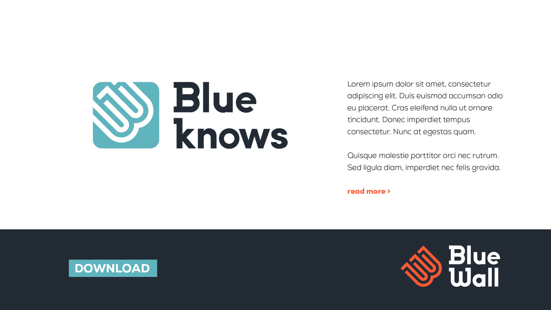 A clear brand book contributes to a visible and recognizable BlueWall. Within this brand book there are several characteristics that determine the visual identity: logo, typography, use of color, graphic elements, photography and use of language. This manual shows the building blocks that can be used to create resources.